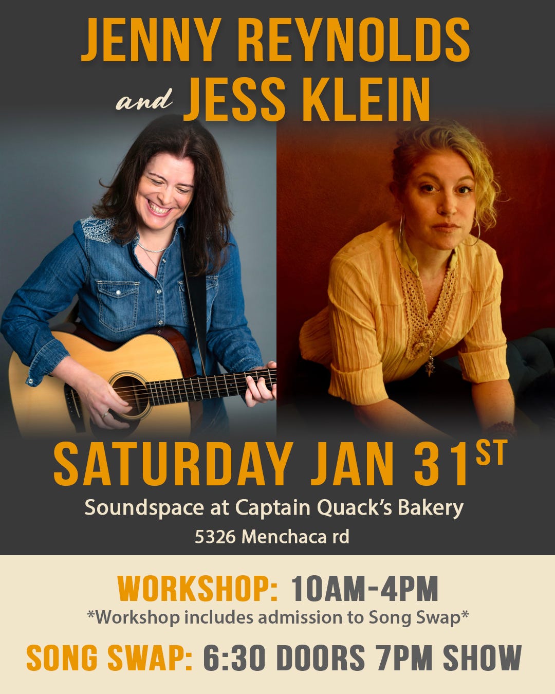 Join me and Jenny Reynolds for this Songwriting Workshop AND show Saturday 1/31 in Austin!