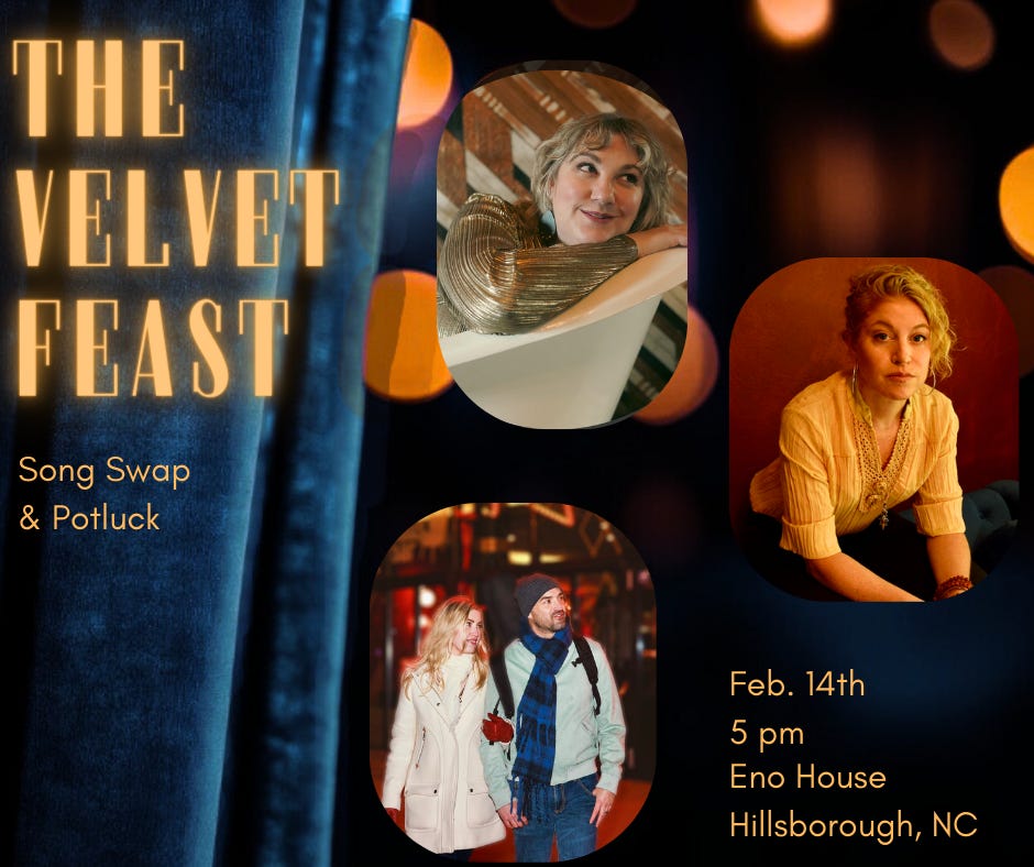 The Velvet Feast, my new monthly series here in Hillsborough, NC returns Saturday 2/14. Potluck 5 pm, Song Swap 6-8 pm.